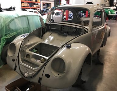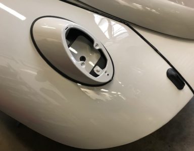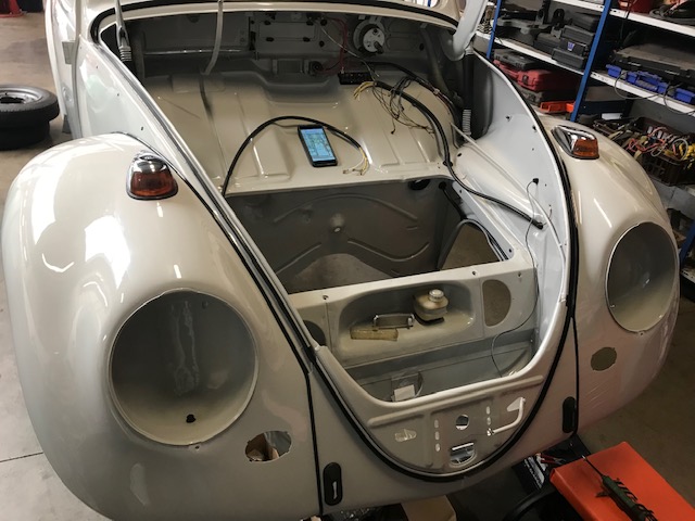 Les éléments de carrosserie, les joints et l’électricité se remontent en attendant le retour du châssis, parti pour un traitement en poudrage noir satiné époxy.